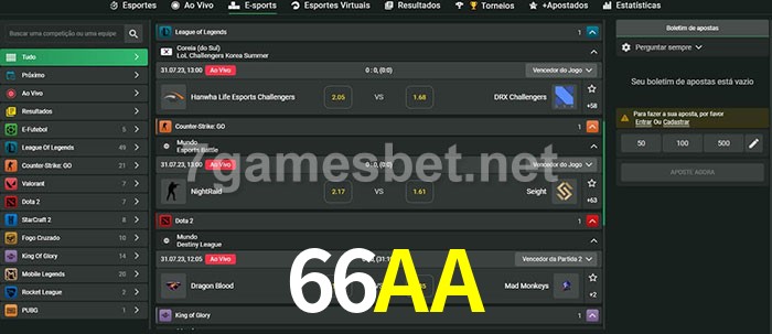 A aposta 66AA oferece aos jogadores a experiência mais conveniente de apostas em eSports!